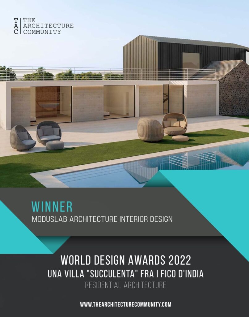 ModusLab si è aggiudicato il prestigioso World Design Architecture Award 2022 con il progetto innovativo nella pittoresca campagna di Santa Maria di Licodia, provincia di Catania. La loro visione trasforma una tradizionale casa rurale, incastonando una struttura in acciaio sulla preesistente pietra lavica e integrando un volume contemporaneo. I materiali selezionati, come acciaio, vetro selettivo e pietra, rispettano l’ambiente circostante. L’approccio bioclimatico, con orientamento solare studiato e impianti eco-sostenibili come pannelli fotovoltaici e recupero delle acque piovane, conferisce all’edificio una sostenibilità eccezionale. ModusLab ha abilmente coniugato tradizione e modernità, evidenziando la bellezza della campagna siciliana con un tocco contemporaneo.